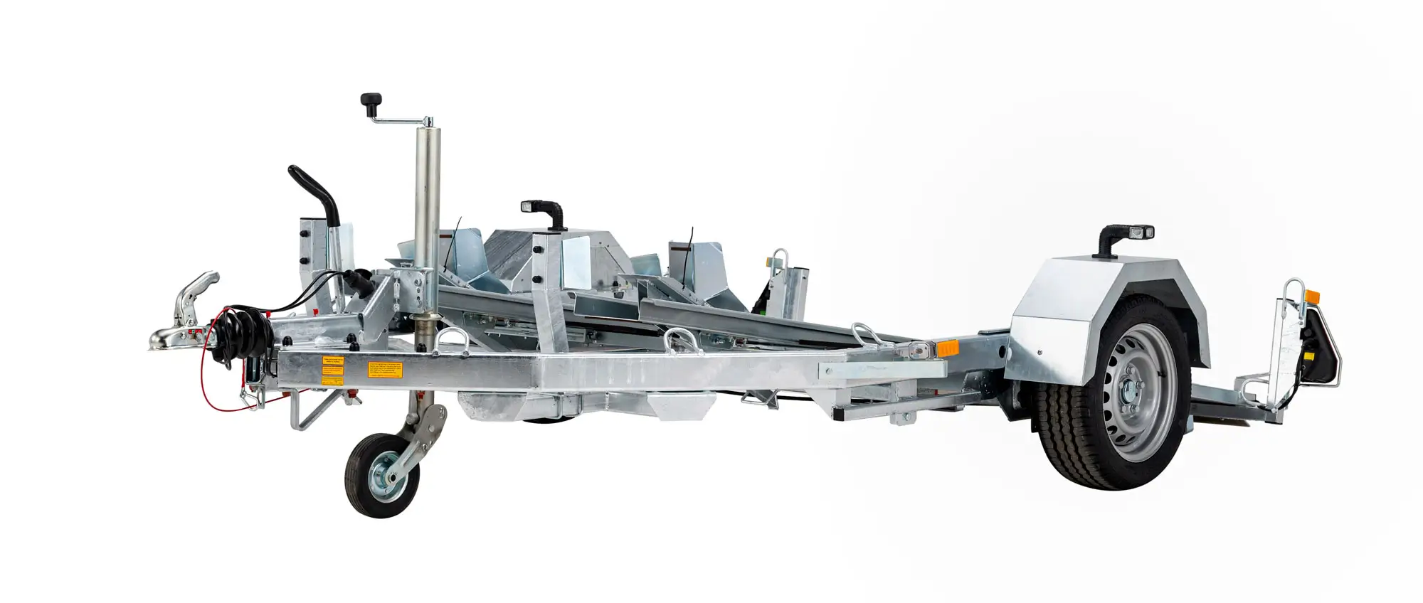 La remorque intègre une roue jockey télescopique, rendant les manœuvres et le stationnement particulièrement simples, même avec deux motos à bord.